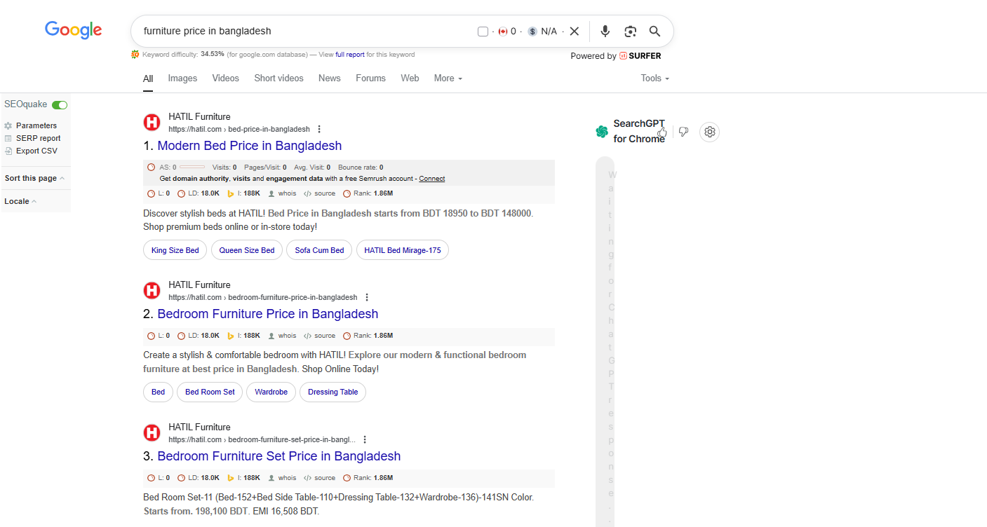 At the start of the campaign, Hatil had strong brand recognition but underperformed in organic search results. Critical commercial keywords like “sofa set price in Bangladesh” and “furniture price in Bangladesh” were not ranking competitively.