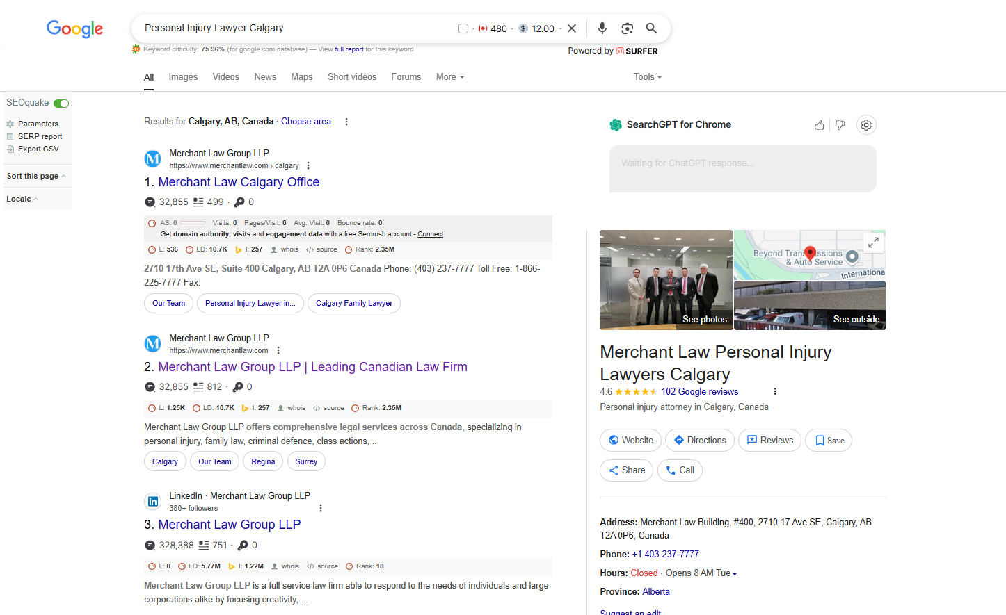 Merchant Law Group LLP is a full-service Canadian law firm with offices across several provinces. Its Calgary office is particularly focused on personal injury law, including representation for car accident victims seeking experienced legal support. Although the firm had already earned strong recognition within the legal industry, its online visibility in Calgary did not reflect that same authority. The objective was clear: strengthen the firm’s presence in organic search for key injury-related terms and generate a steady flow of qualified leads—without depending on paid advertising.
